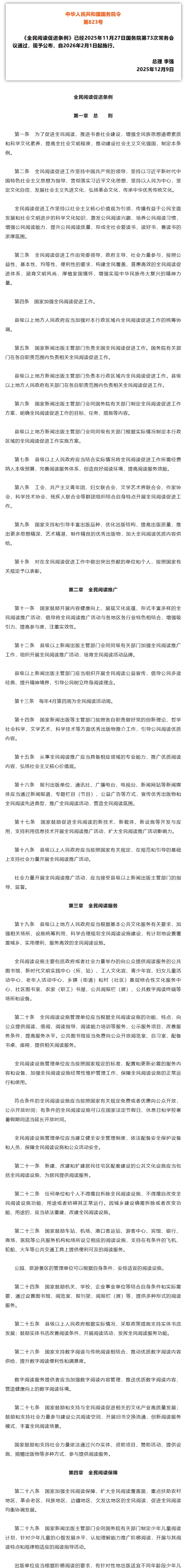 《全民阅读促进条例》全文发布
